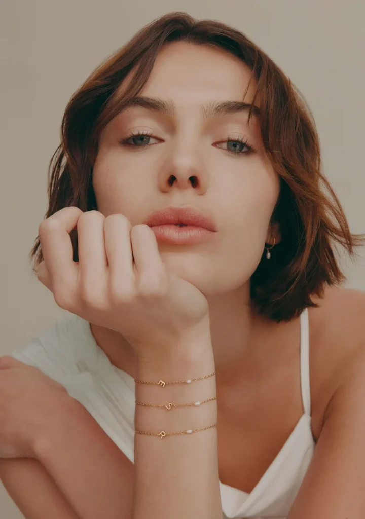Spell your story with Saint Valentine’s signature Pearl Letter Bracelets. Designed as a meaningful keepsake for everyday elegance, giftees can wear their own initials or that of a loved one to keep them close. Featuring a fine chain adorned with your choice of letter and petite freshwater pearls. A timeless piece, perfect for gifting and made to celebrate self-love or cherished connections.