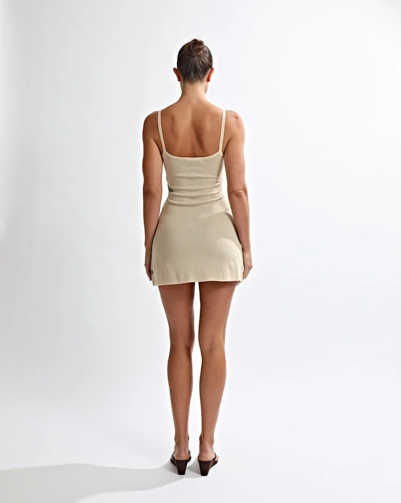 One Mile Cali Knit Mini Dress in Sand, $140. Shop here.
