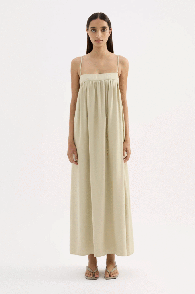 Nothing screams “Aussie Christmas” like a breezy linen dress on a 35-degree day. Nude Lucy’s Sienna Maxi in artichoke delivers that relaxed, earthy green that feels both festive and natural. It’s the dress for the girl who wants to breathe, move, and not melt into the chair by 3pm. Comfortable yet elevated, it’s perfect for families who prioritise comfort without sacrificing a cohesive colour palette in the group photo. Plus, linen on a hot day is basically a Christmas miracle.
