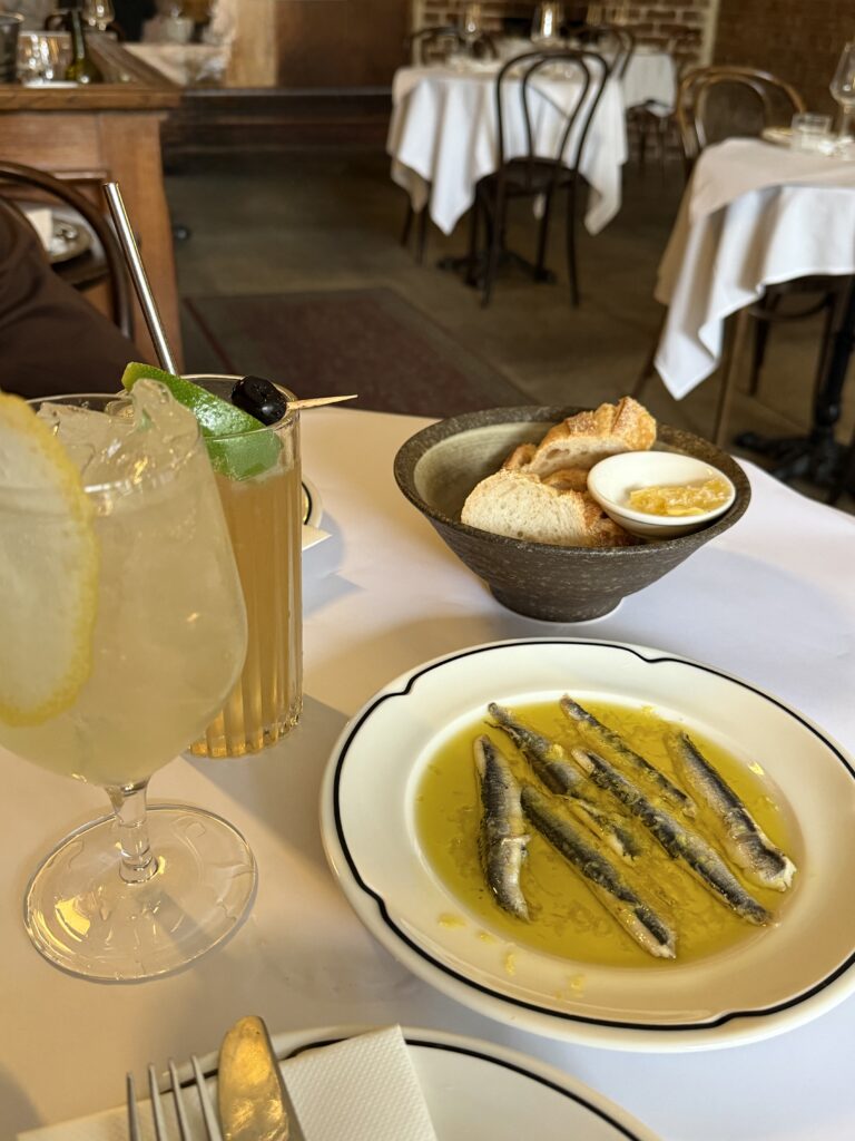 Boquerones accompanied with a 98 Spritz and a Dirty Rickey