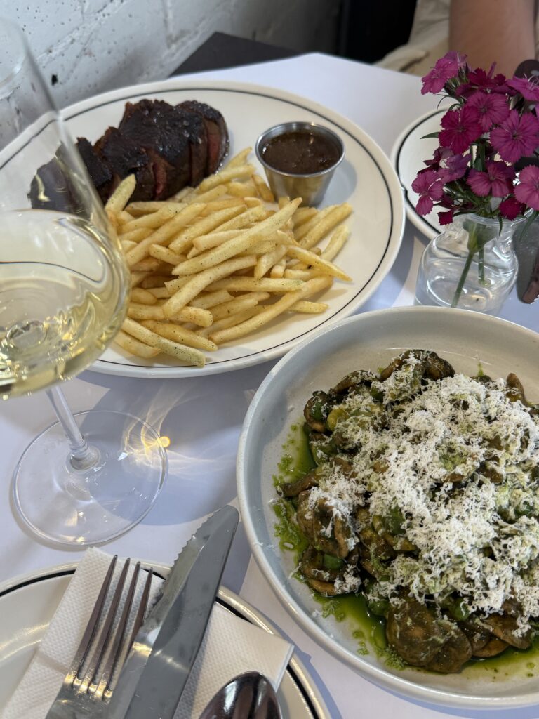 We coupled our Steak frites and Orecchiette with a glass of Prosper Maufoux Bourgogne (Chardonnay) and Brave New Wine ‘Klusterphunk (Chardonnay, Orange). Both drinks were divine, with the Chardonnay providing a smooth, buttery taste that complimented the steak well. The Orange was a briny, hazy Chardonnay that sent a battalion of flavours to war in your mouth in the best way imaginable.