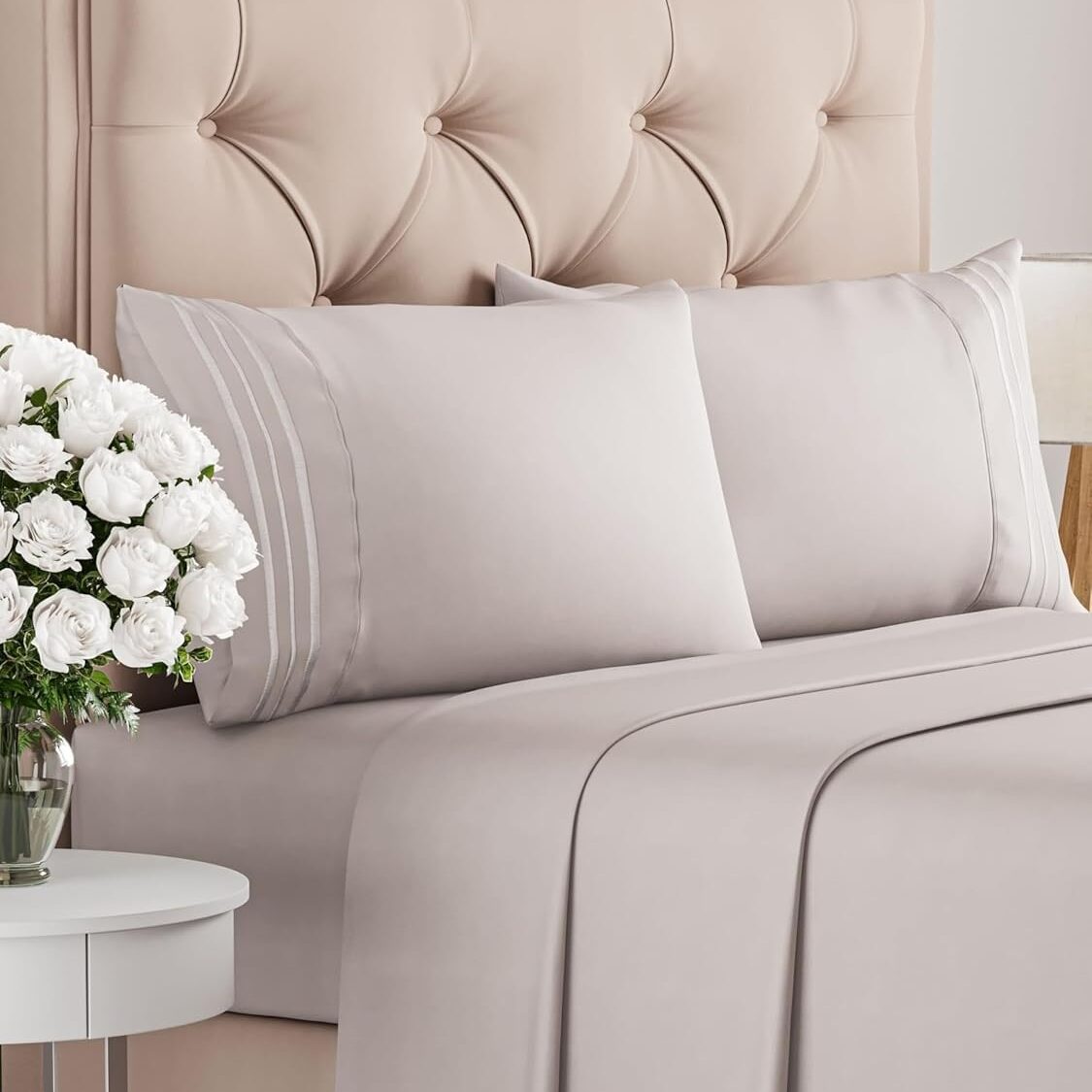 Elevate your bedding with this premium set, including 1 flat sheet, 1 fitted sheet, and 2 pillowcases. Designed to fit Queen-size mattresses with ease, this set offers comfort and style for any bedroom.