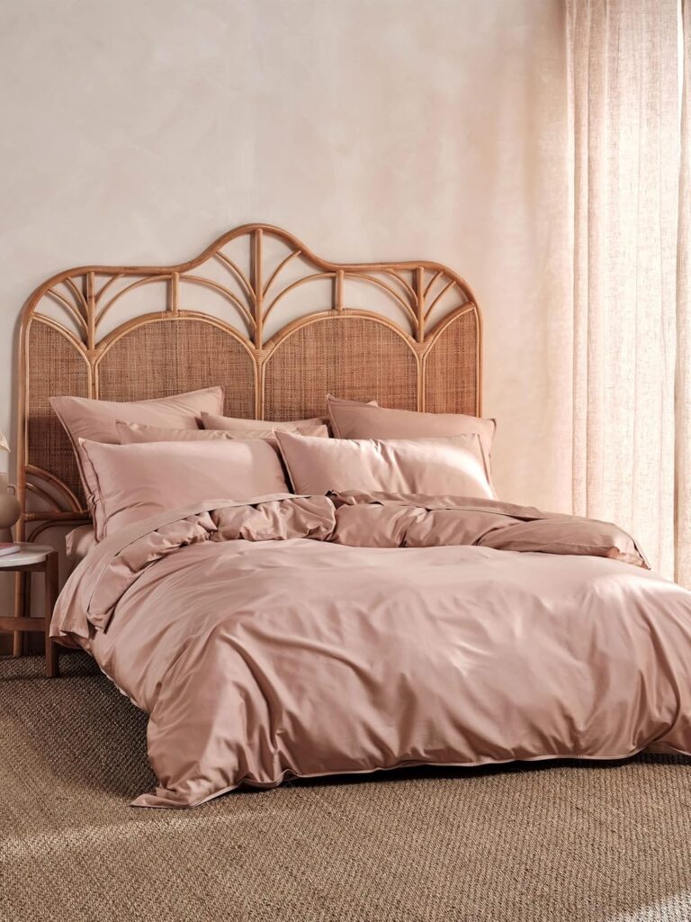 Smoother than silk and made from high-quality, 400 thread bamboo/cotton, this Nara quilt cover set enjoys a luxe sateen weave and is trimmed with stitched borders.
