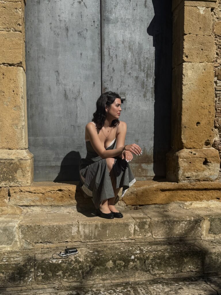 For dinner overlooking the sea, or exploring the local towns, I wore the Florence Dress by Katharina Lou, a soft check pattern and open-leg silhouette that felt timeless, not trend-driven. There’s a subtle, quiet-luxury energy to Katharina Lou’s pieces: natural fabrics, thoughtful tailoring, and a nod to vintage European simplicity. I paired it again with my well-loved Wittner Ballet Flats, because comfort and glamour aren’t mutually exclusive (especially when cobblestones are involved).
